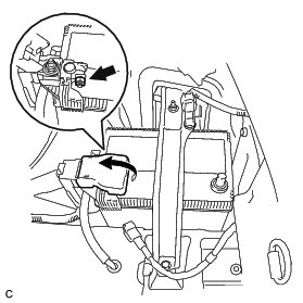 (c) Loosen the nut, and disconnect the positive (+) battery terminal.