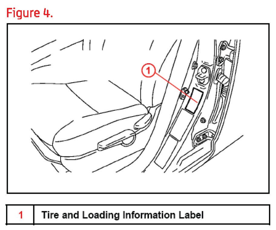 1. Adjust all tires (except the compact spare tire) to the standard tire inflation pressure, as indicated on the Tire and Loading Information label located inside the driver's door jamb.