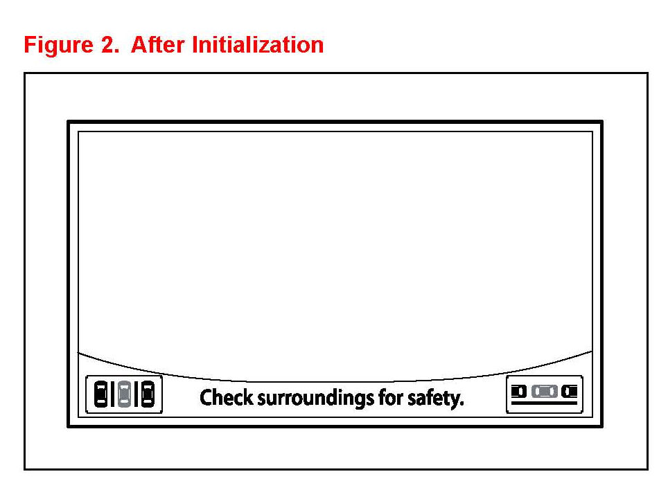 5. When "Check surroundings for safety." appears on the rear view monitor as shown in figure 2, the initialization of the Advanced Parking Guidance System has been completed.