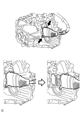 (d) Remove the 3 bolts and motor cable from the hybrid transaxle assembly.