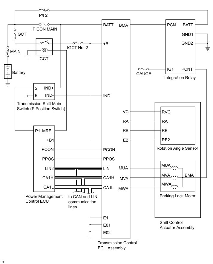 (3) After receiving the signal, the transmission control ECU assembly activates the shift control actuator in order to unlock the parking lock mechanism.