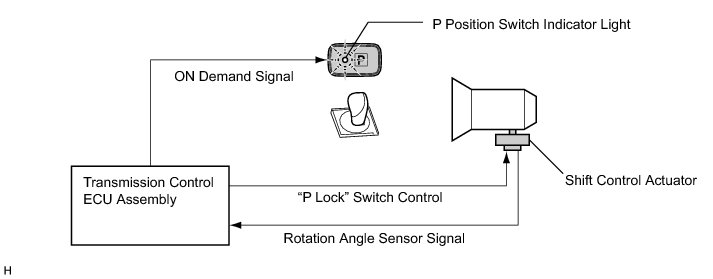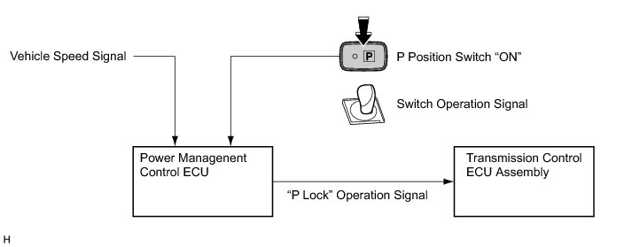 (3) If the power management control ECU determines that "P lock" is possible, it sends a "P lock" operation demand signal to the transmission control ECU assembly.