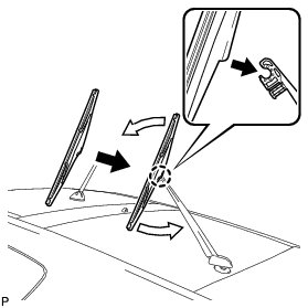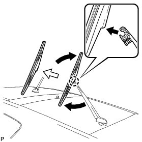 (b) Pull the wiper blade straight toward to remove it from the wiper arm.