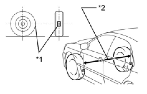 (d) Put tread center marks on the rearmost points of the front wheels and measure the distance between the marks (dimension B).