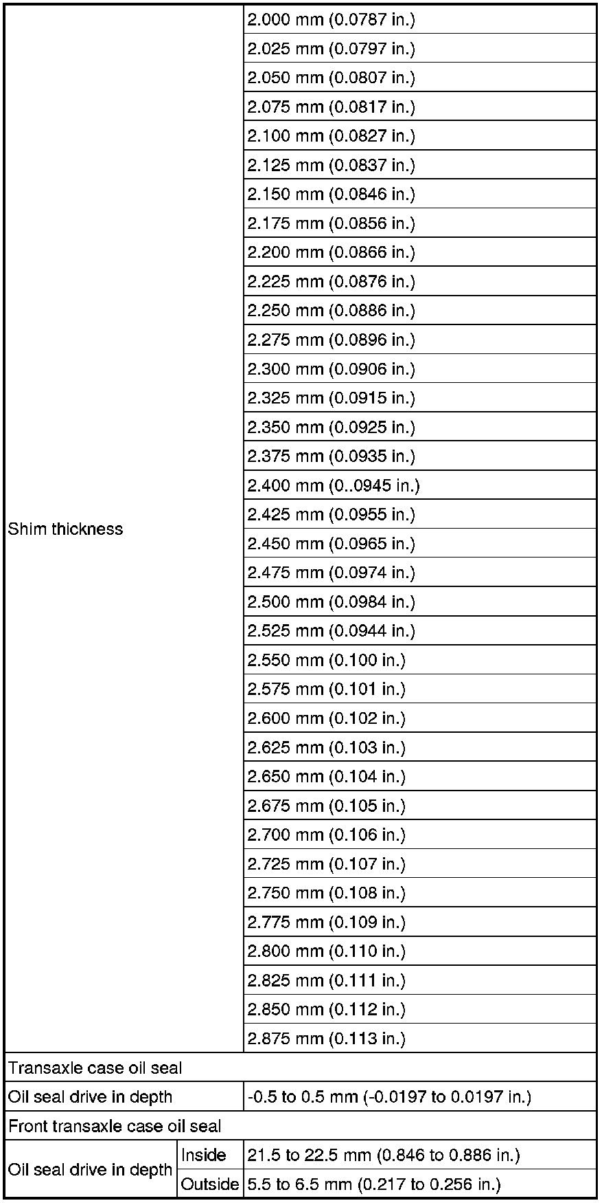 SPECIFICATIONS: U760F AUTOMATIC TRANSMISSION / TRANSAXLE: SERVICE DATA