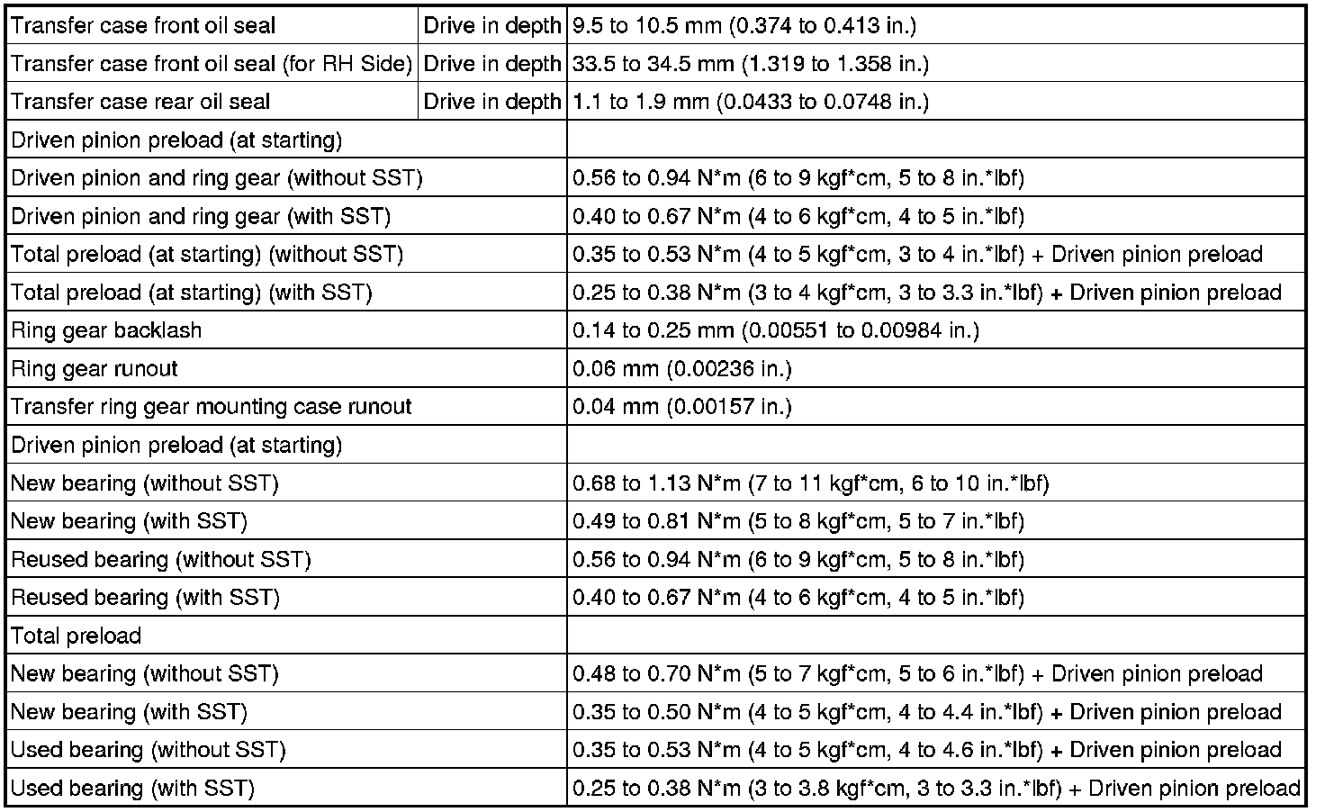 SPECIFICATIONS: MF1A TRANSFER / 4WD / AWD: SERVICE DATA