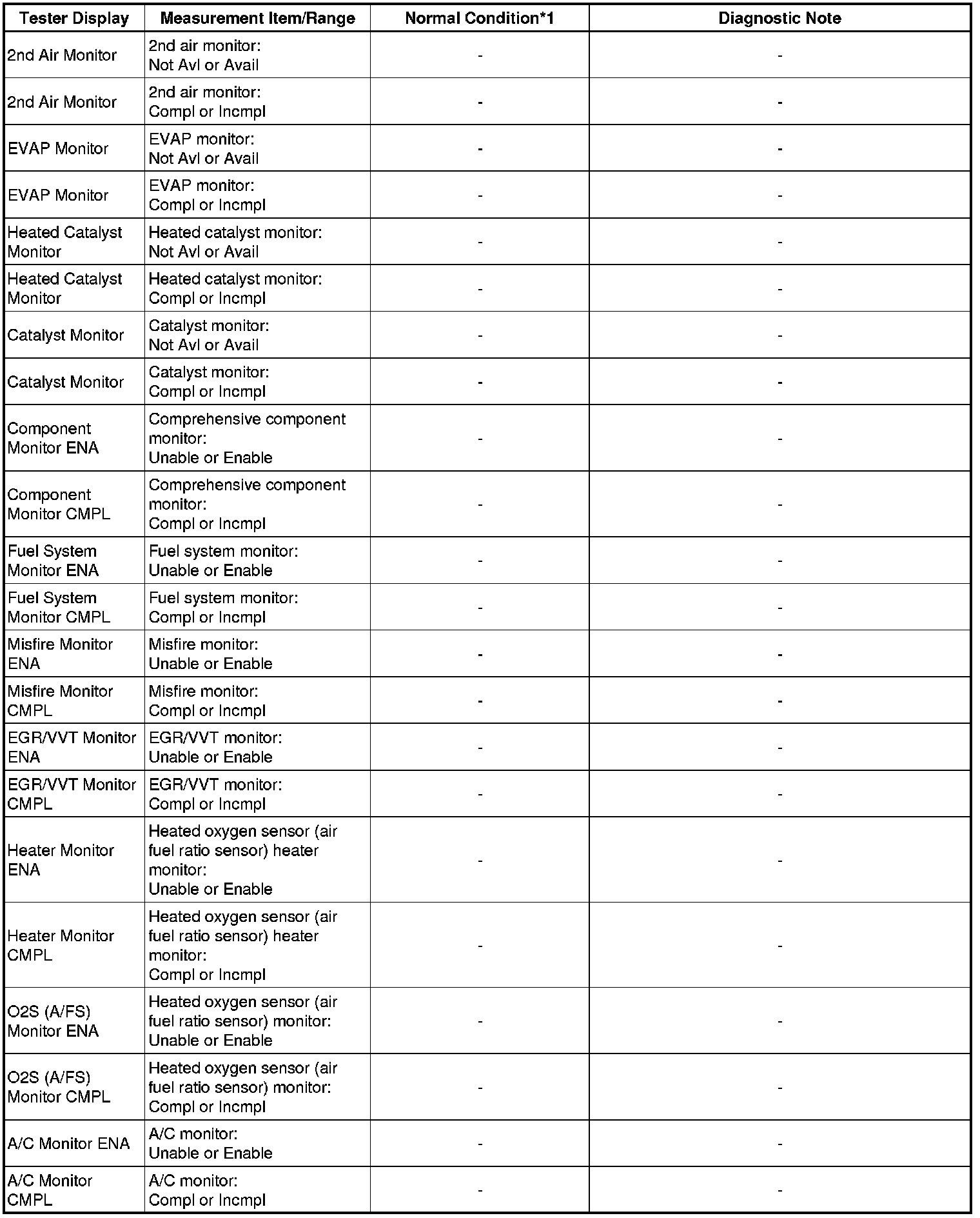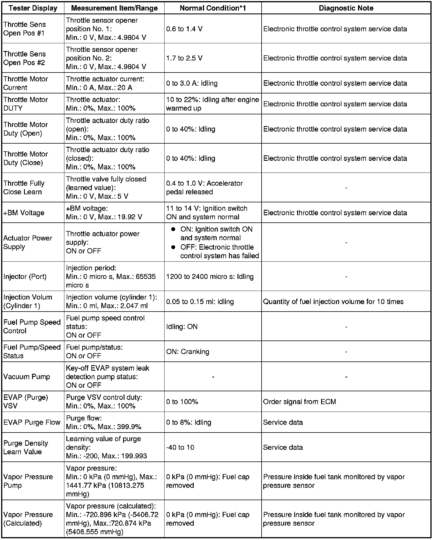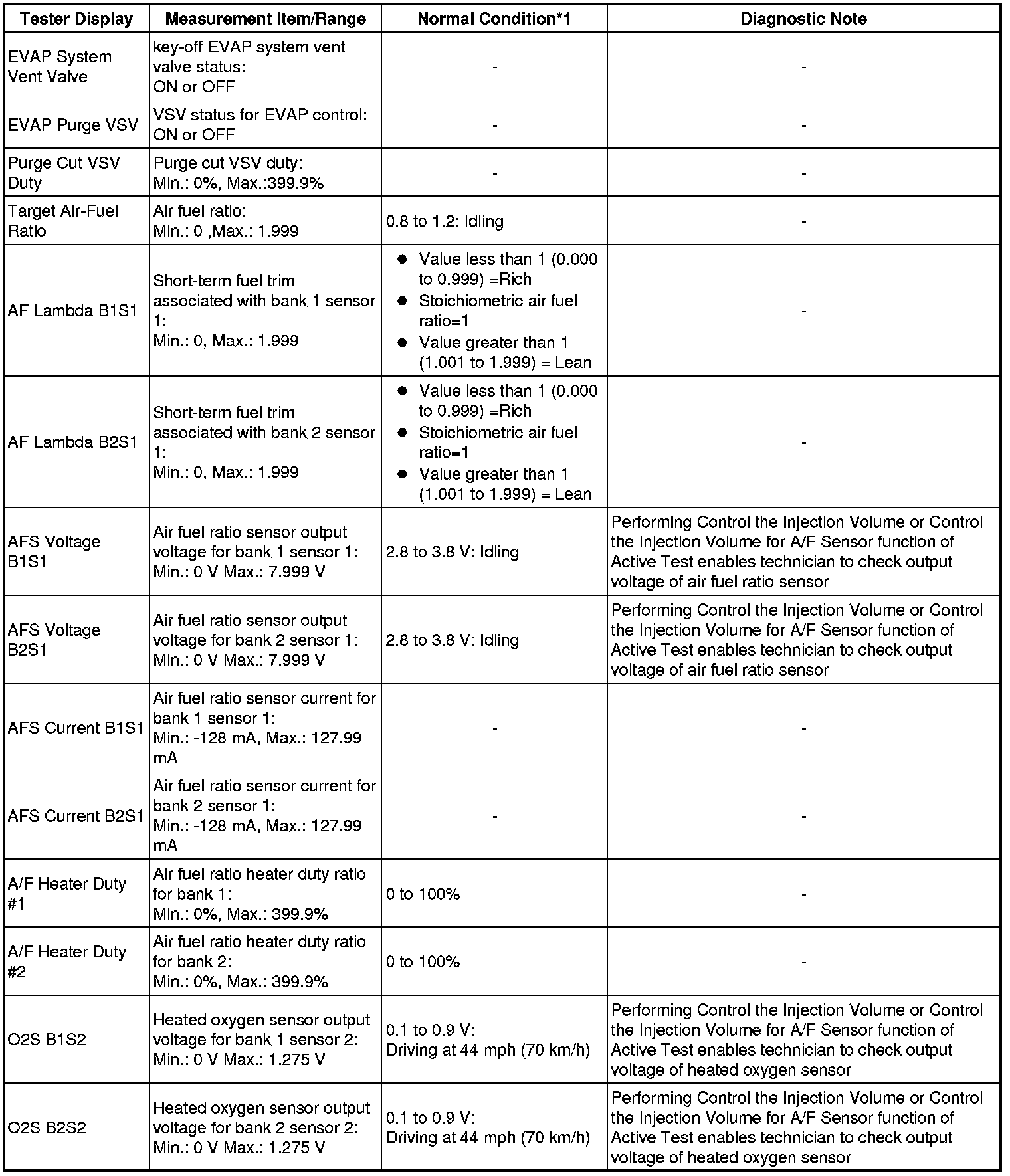 * *1: If no idling conditions are specified, the transmission gear selector lever should be in the N or P position, and the A/C switch and all accessory switches should be off.