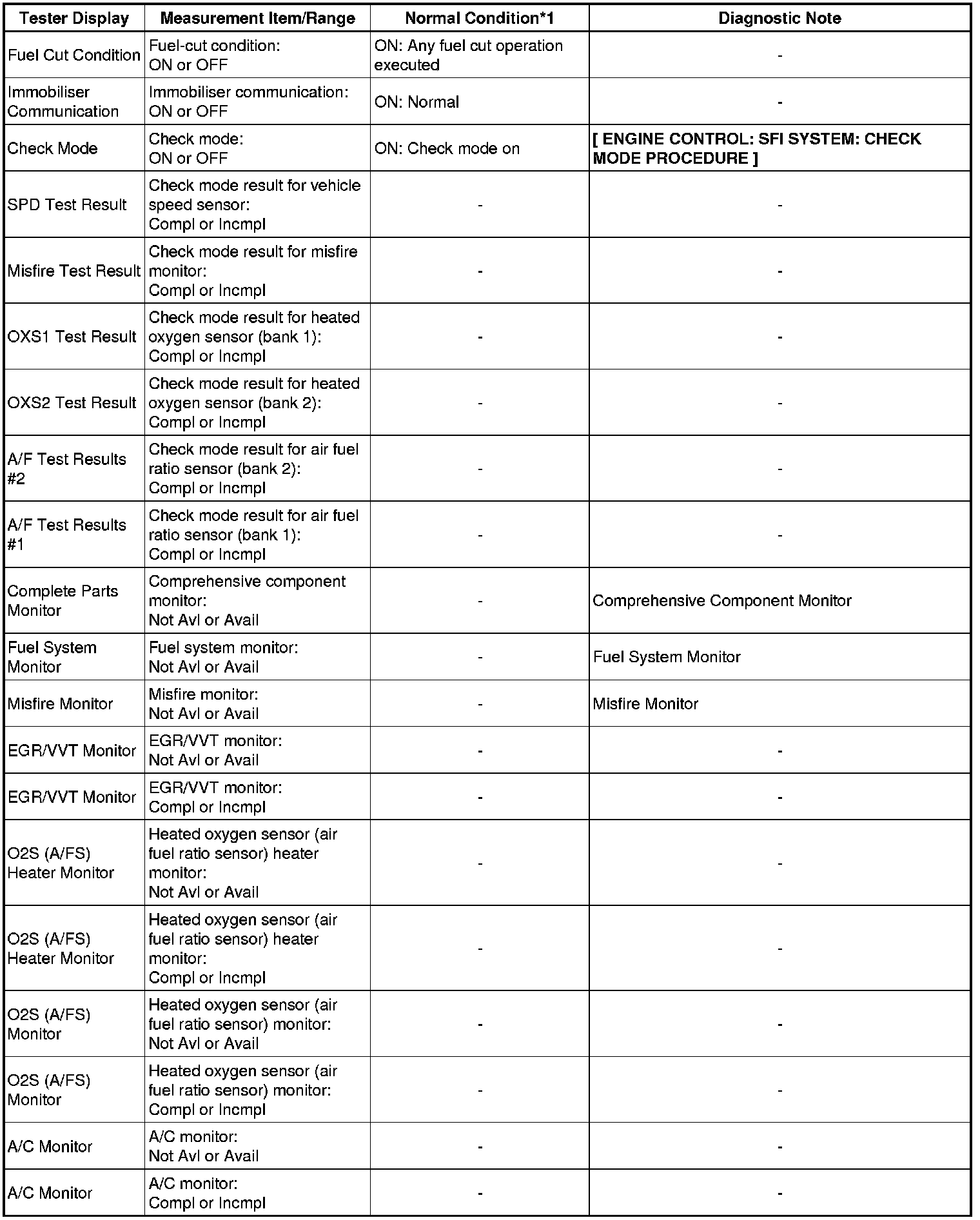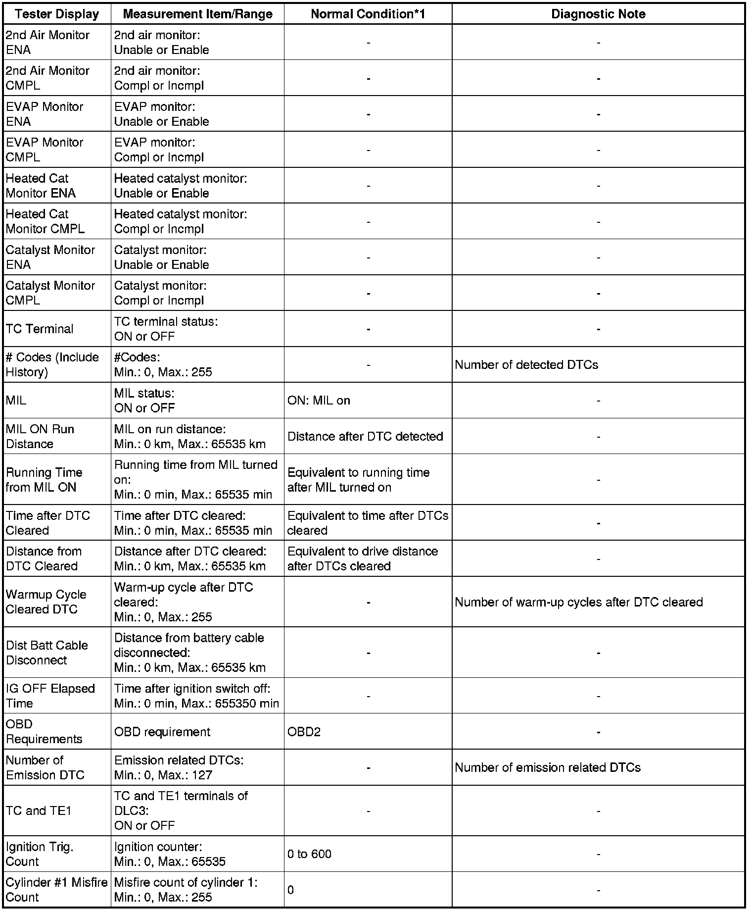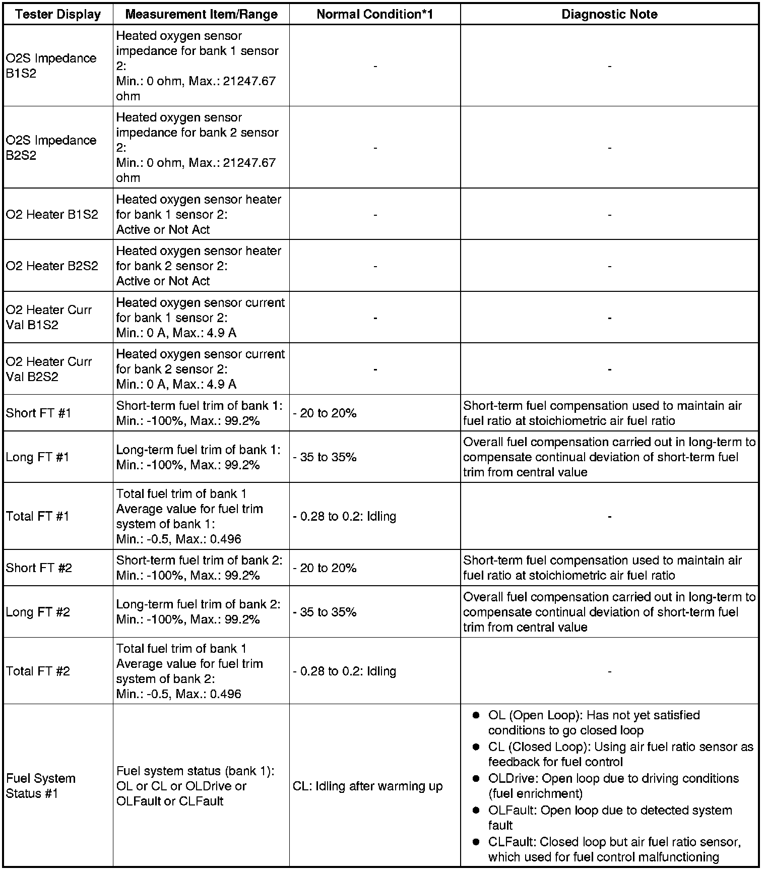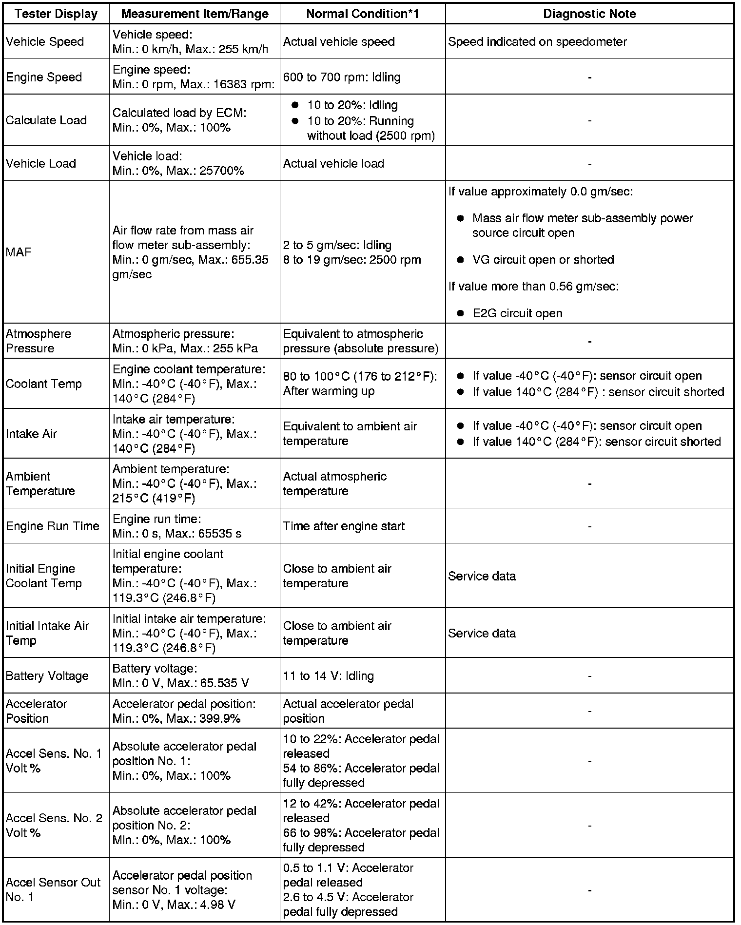 * *1: If no idling conditions are specified, the transmission gear selector lever should be in the N or P position, and the A/C switch and all accessory switches should be off.
