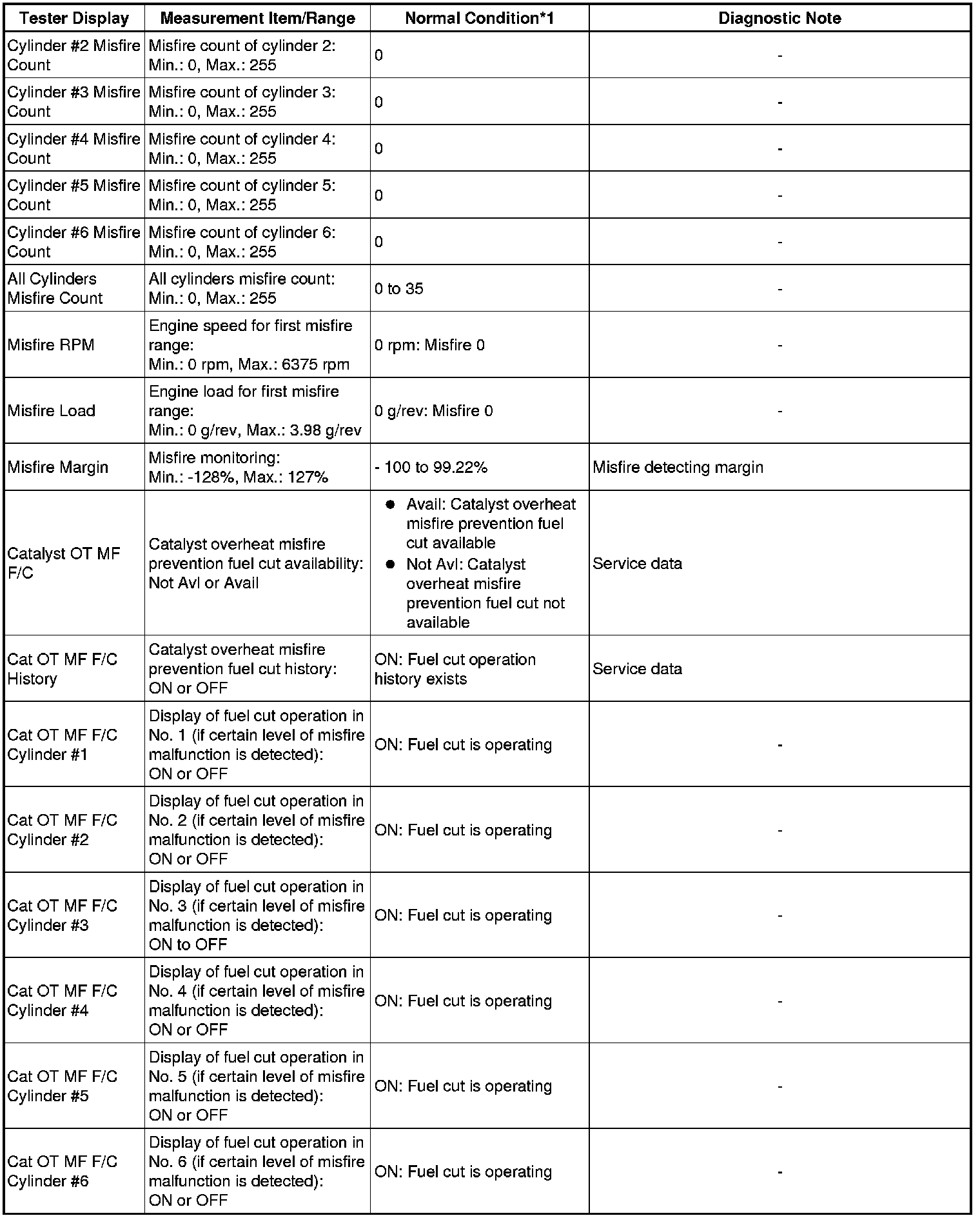 * Monitor the engine speed (Engine Speed of Cyl #1 to #6, Av Engine Speed of All Cyl) displayed on the Techstream.