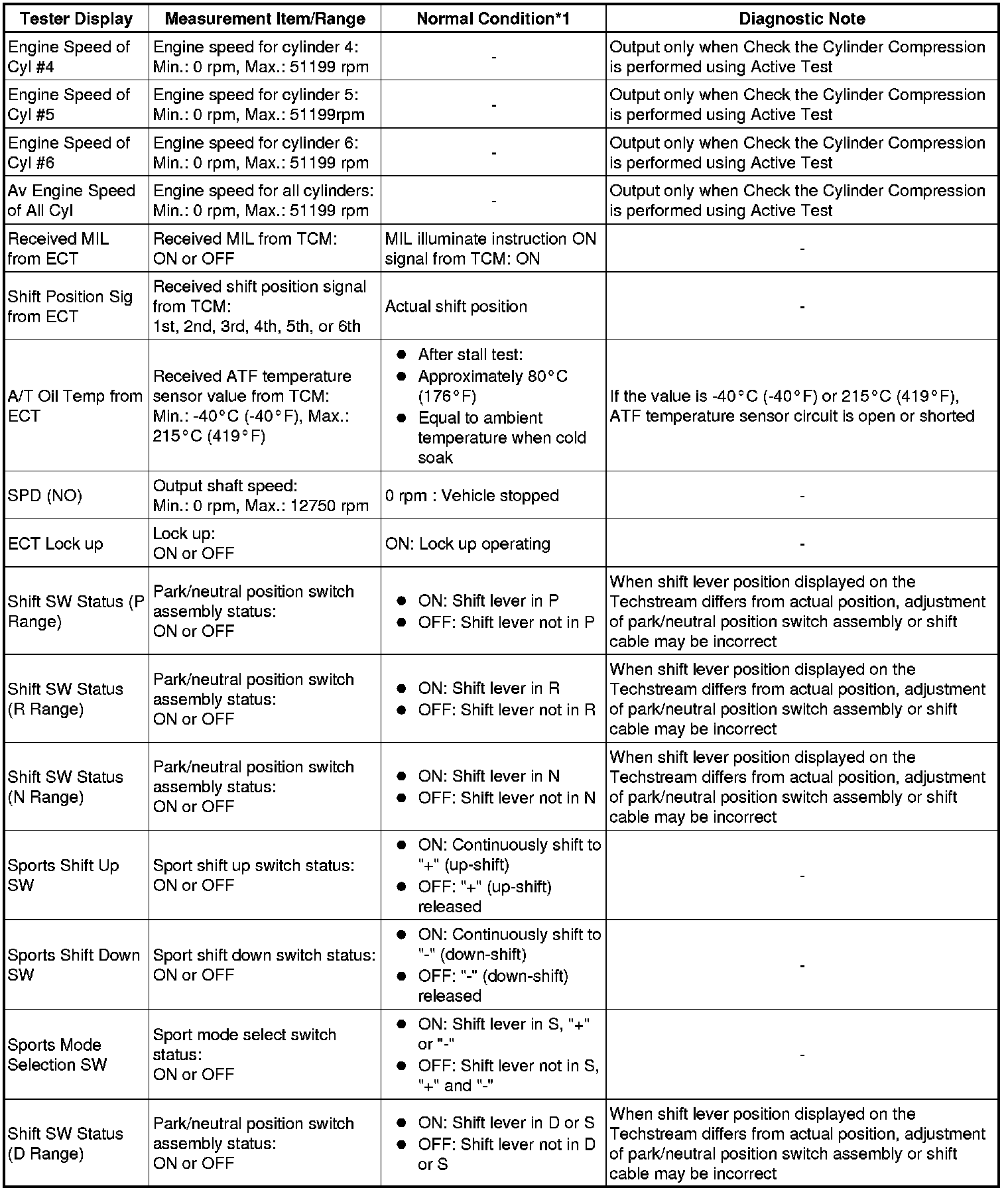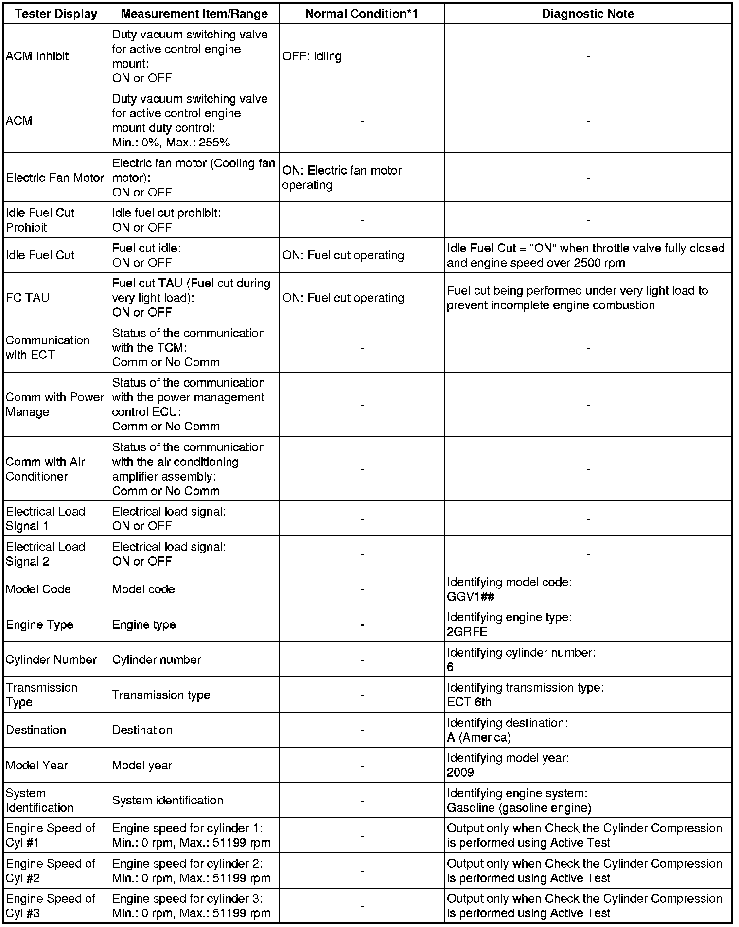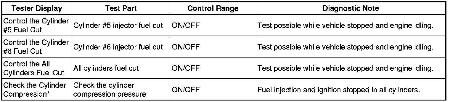 *: While the Active Test item Check the Cylinder Compression is being performed, the fuel and ignition of all cylinders is cut. At this time, the ECM measures the speed of each cylinder while the engine is being cranked.