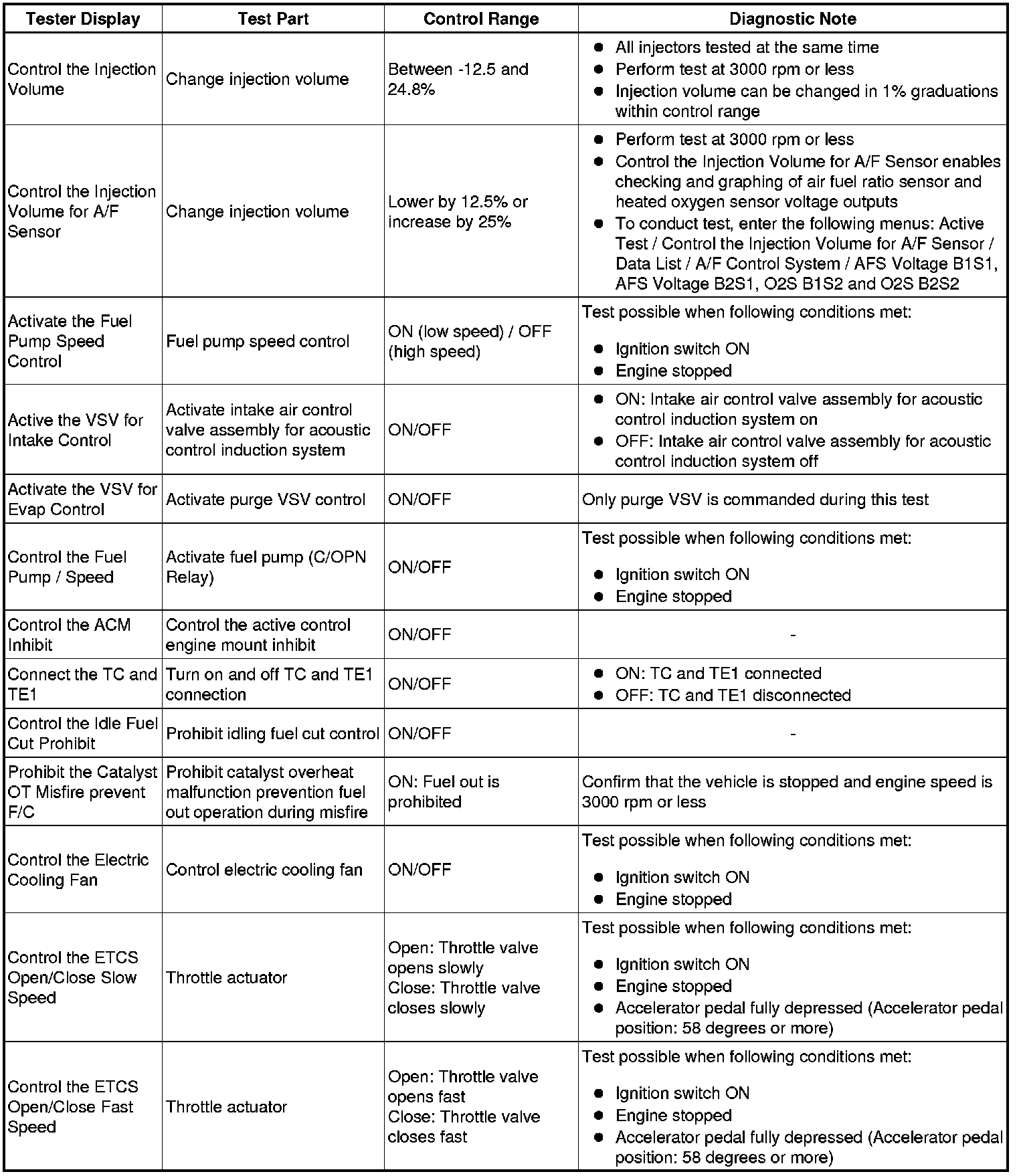 2GR-FE ENGINE CONTROL: SFI SYSTEM: DATA LIST / ACTIVE TEST