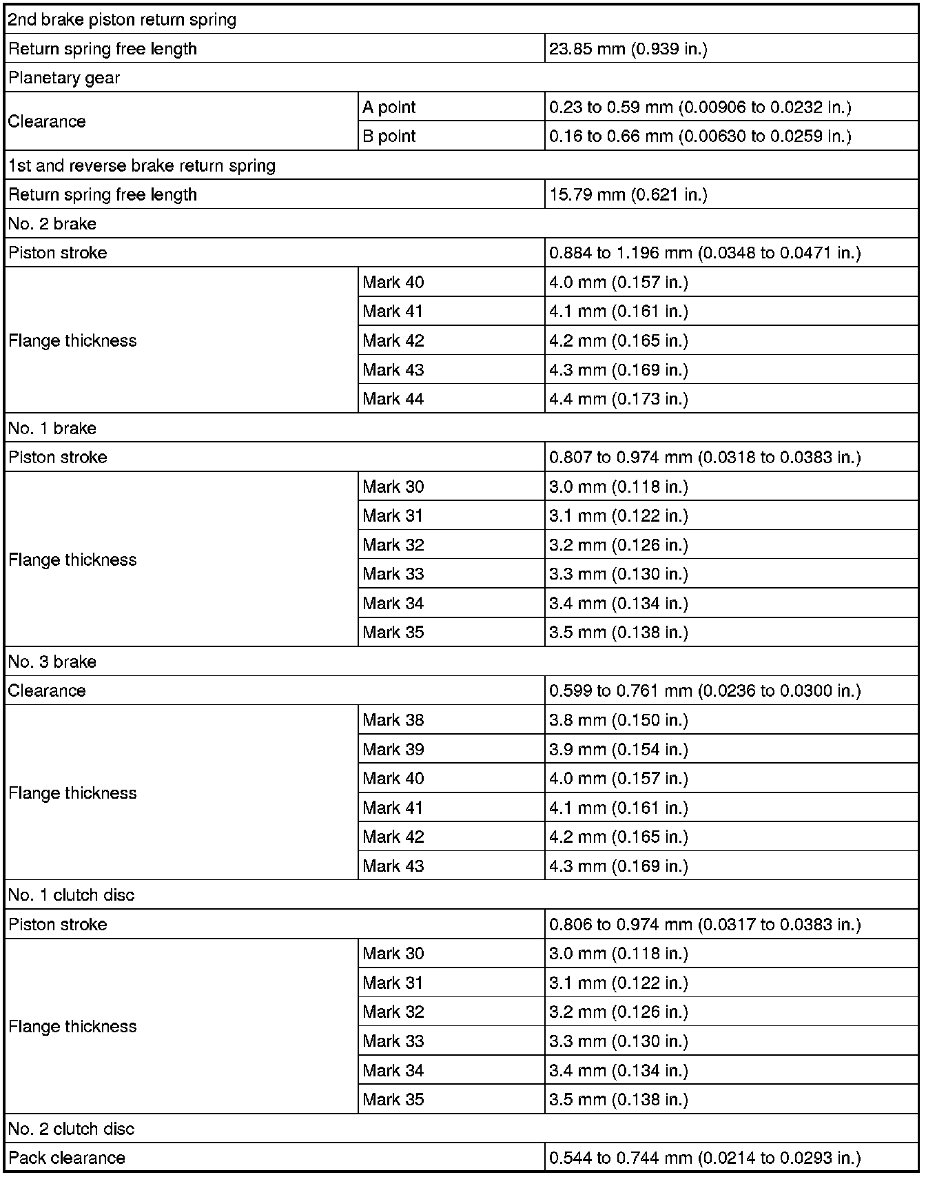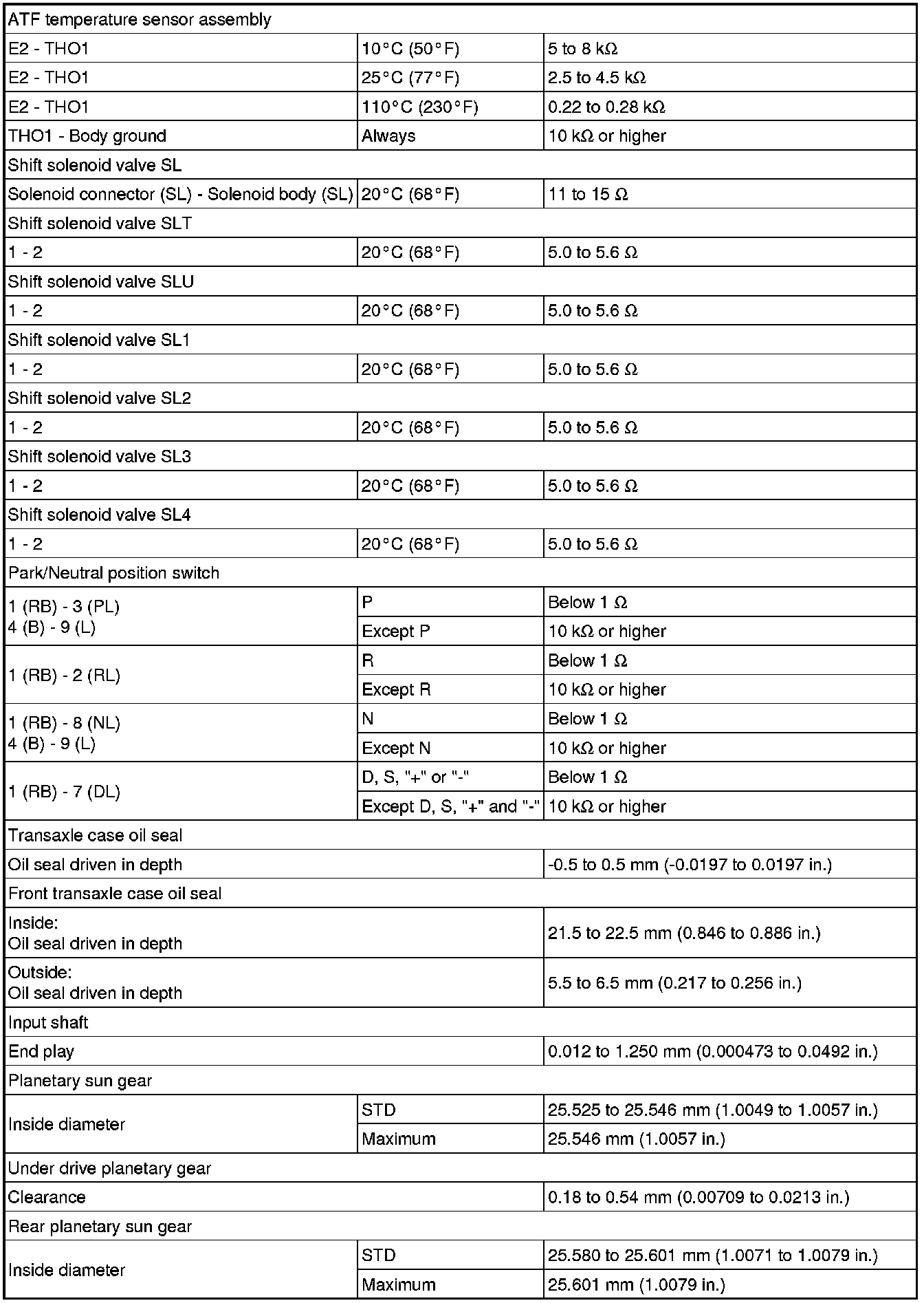 SPECIFICATIONS: U660F AUTOMATIC TRANSMISSION / TRANSAXLE: SERVICE DATA