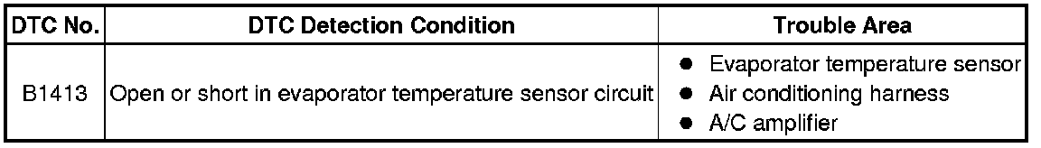 HEATING / AIR CONDITIONING: AIR CONDITIONING SYSTEM (for Manual Air Conditioning System): B1413: Evaporator Temperature Sensor Circuit