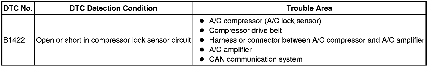 HEATING / AIR CONDITIONING: AIR CONDITIONING SYSTEM (for Manual Air Conditioning System): B1422: Compressor Lock Sensor Circuit