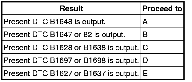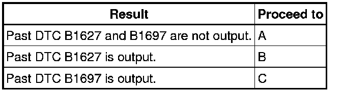 - Codes other than present DTC B1627, B1628, B1637, B1638, B1647, B1648, B1697, B1698 and 82 may be output at this time, but they are not related to this check.