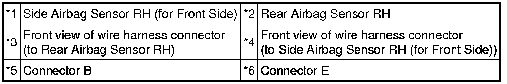 (c) Check that the connectors are properly connected to the side airbag sensor RH (for rear side), rear airbag sensor RH and side airbag sensor RH (for front side). Also check that the connectors that link the No. 2 floor wire and front door wire RH are properly connected.
