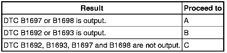 Codes other than DTC B1692, B1693, B1697 and B1698 may be output at this time, but they are not related to this check.