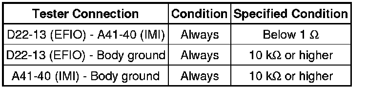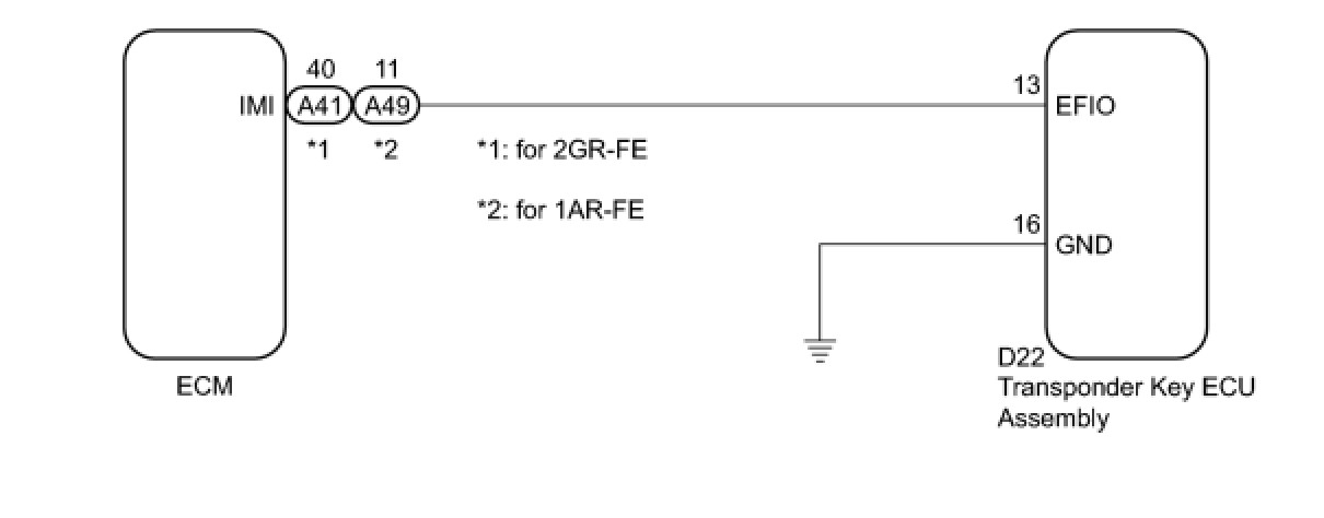 If the communication line (EFIO-IMI) to the transponder key ECU assembly is stuck high output (e.g. shorted to +B), the ECM stores this DTC.