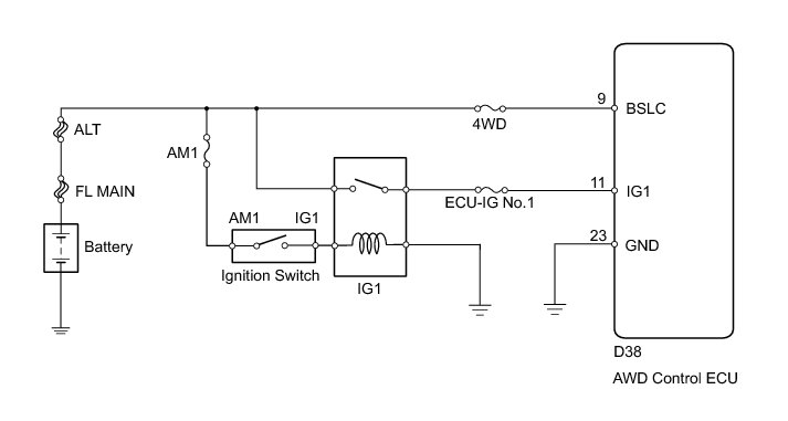 3. CHECK WIRE HARNESS (AWD CONTROL ECU - BATTERY)