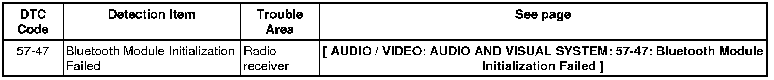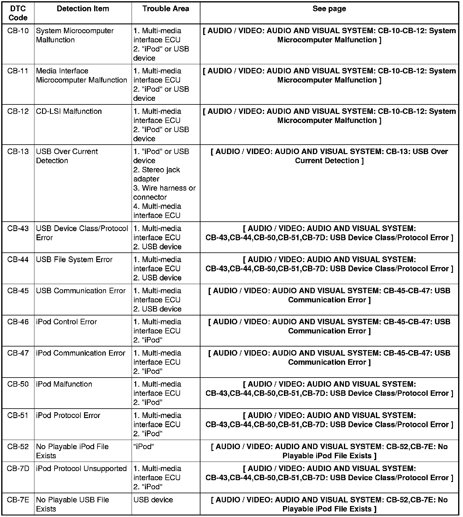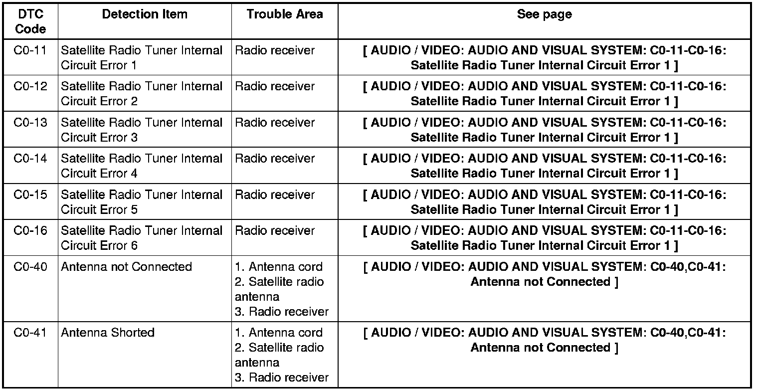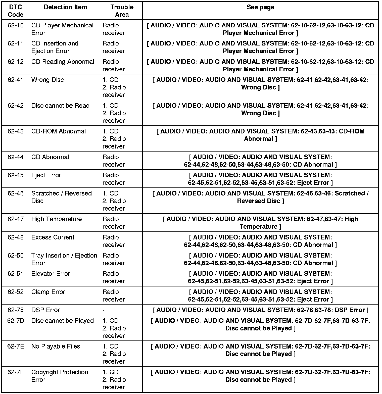 AUDIO / VIDEO: AUDIO AND VISUAL SYSTEM: DIAGNOSTIC TROUBLE CODE CHART