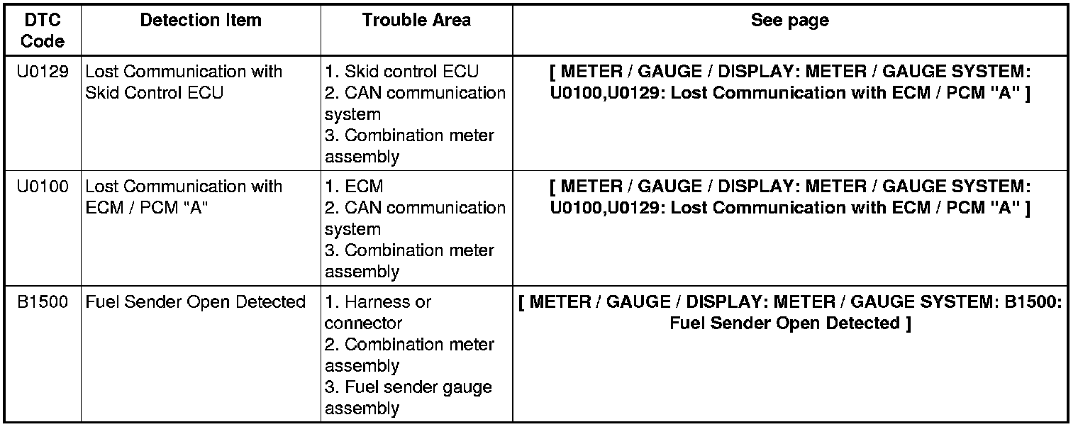 METER / GAUGE / DISPLAY: METER / GAUGE SYSTEM: DIAGNOSTIC TROUBLE CODE CHART
