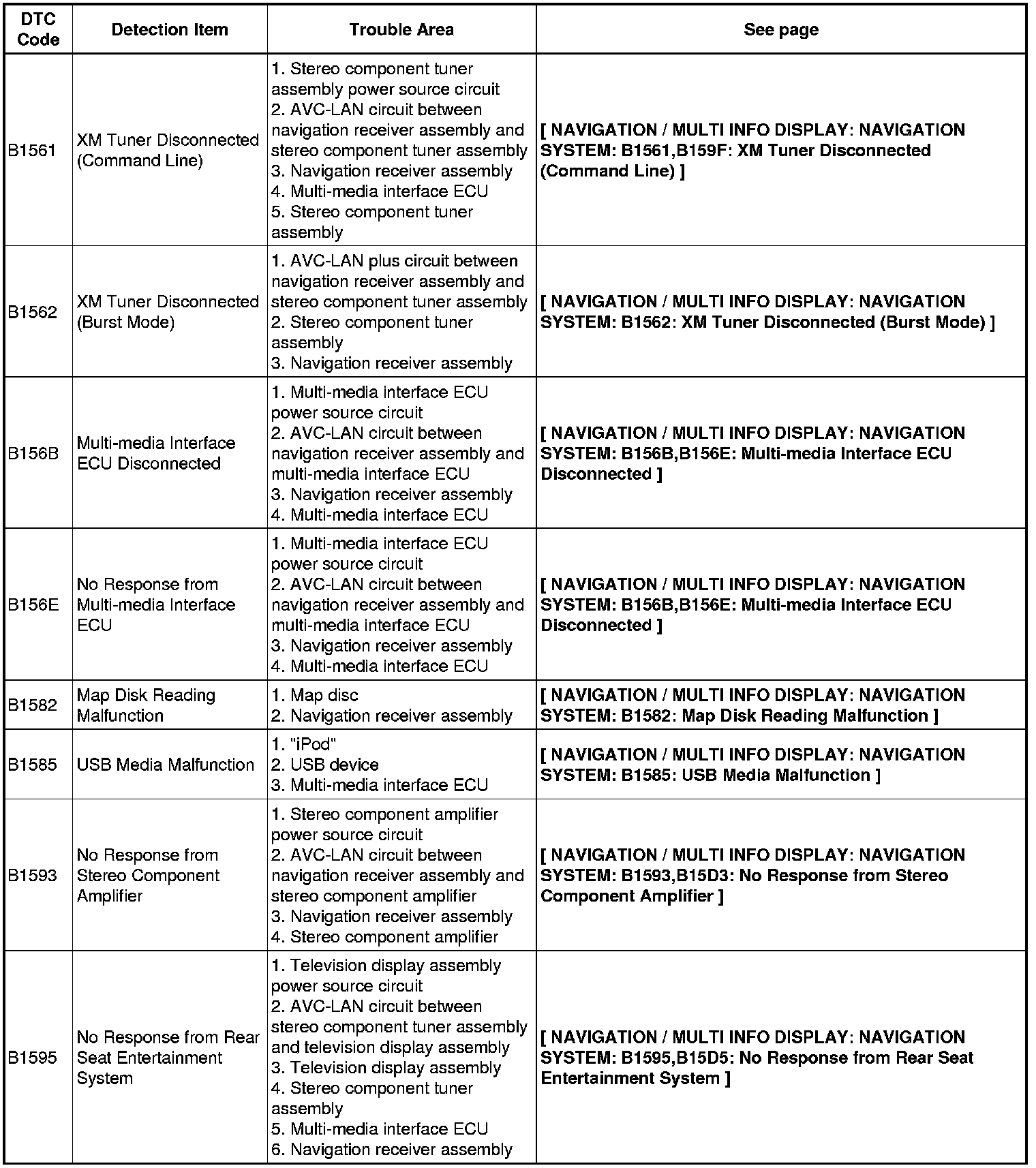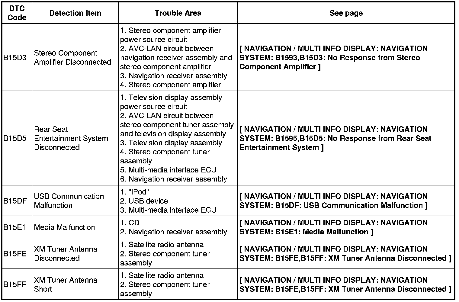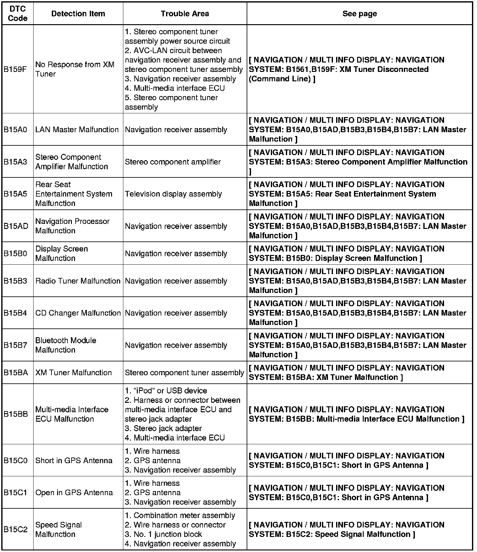 NAVIGATION / MULTI INFO DISPLAY: NAVIGATION SYSTEM: DIAGNOSTIC TROUBLE CODE CHART