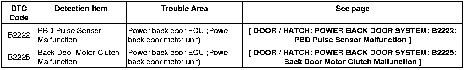 DOOR / HATCH: POWER BACK DOOR SYSTEM: DIAGNOSTIC TROUBLE CODE CHART