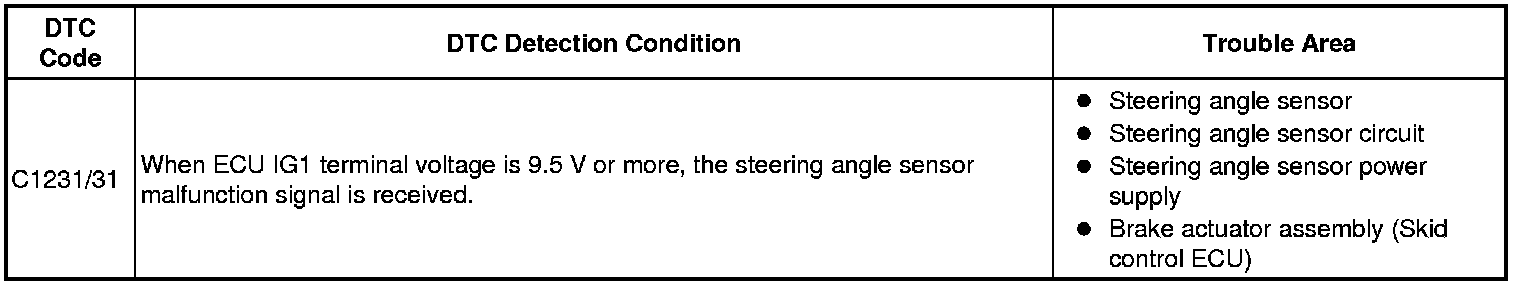 BRAKE CONTROL / DYNAMIC CONTROL SYSTEMS: VEHICLE STABILITY CONTROL SYSTEM: C1231/31: Steering Angle Sensor Circuit Malfunction