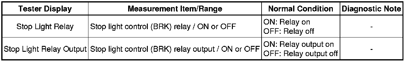 (d) Check for stop light control (BRK) relay operation using Data List and stop light operation by performing an Active Test.