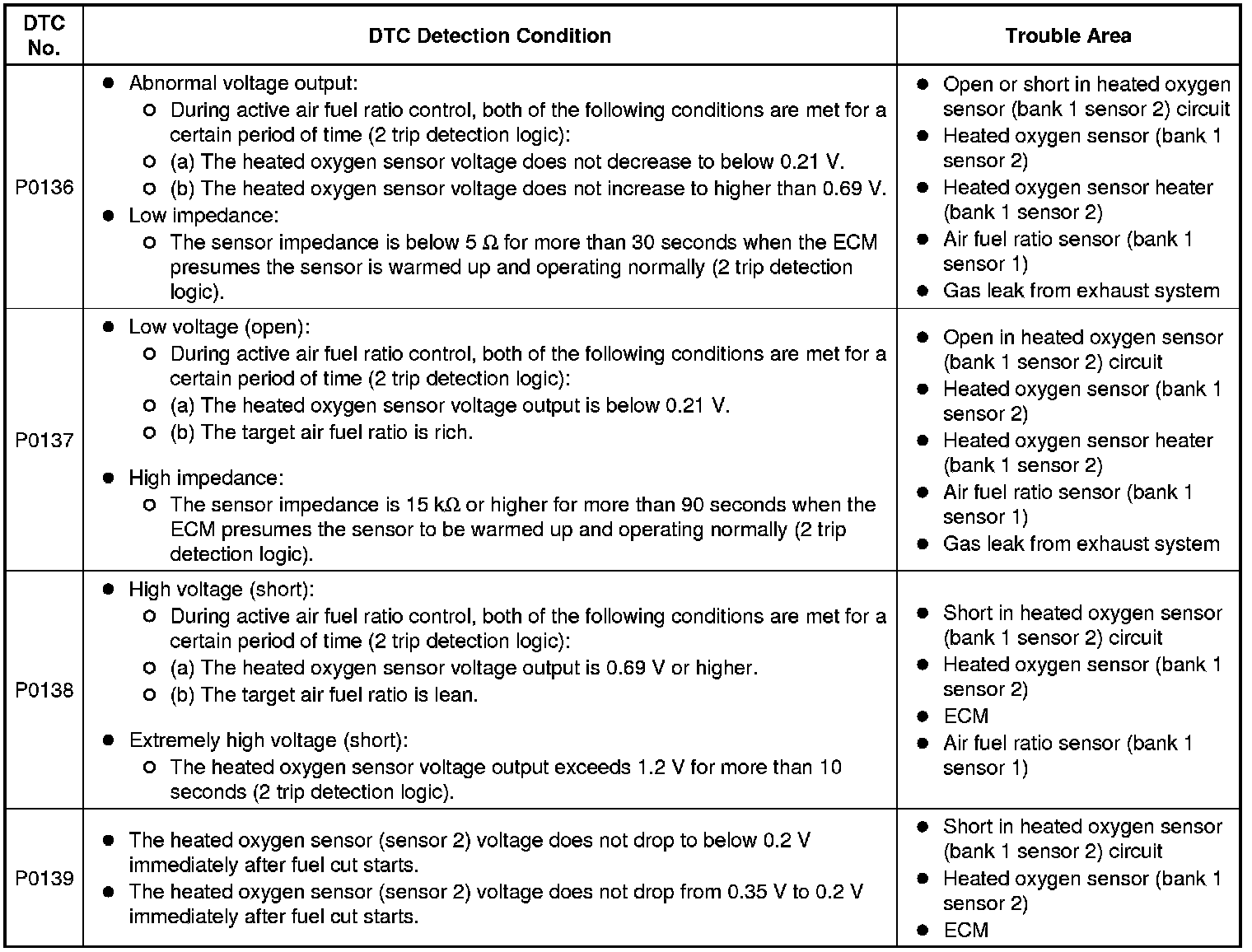 2. Abnormal Voltage Output of Heated Oxygen Sensor (DTC P0136)