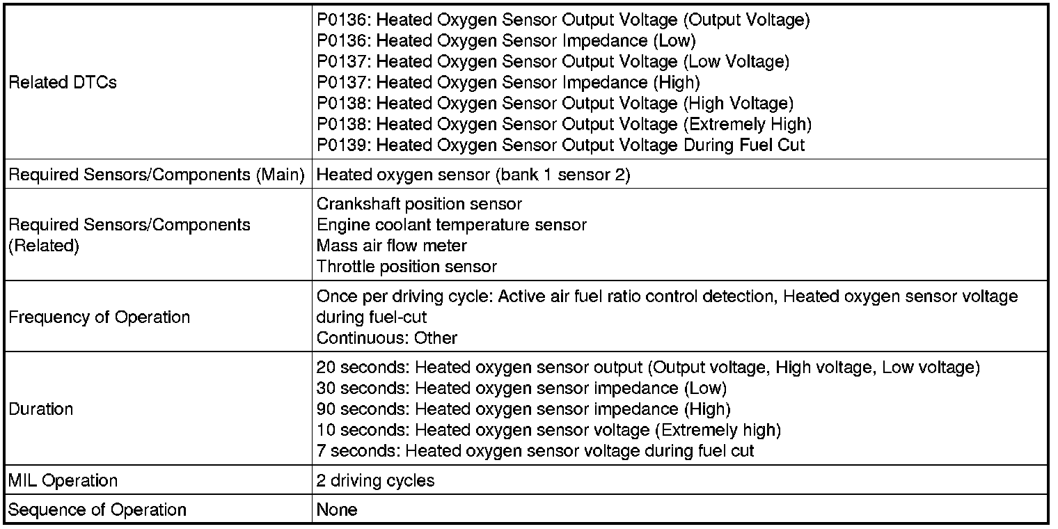 - DTC P0136 indicates the deterioration of the heated oxygen sensor. The ECM stores the DTC by calculating the impedance of the sensor when the typical enabling conditions are satisfied (2 driving cycles).