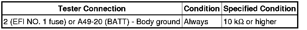 NG -- REPAIR OR REPLACE HARNESS OR CONNECTOR (EFI NO. 1 FUSE - ECM)