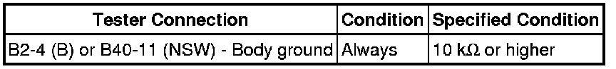 (b) Measure the resistance according to the value(s) in the table below when the shift lever is moved to each position.