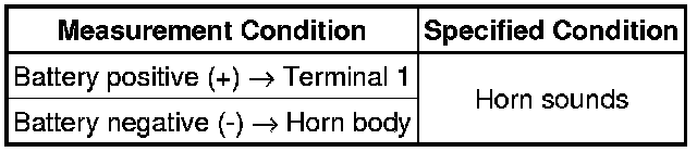 (b) If the result is not as specified, replace the security horn assembly.