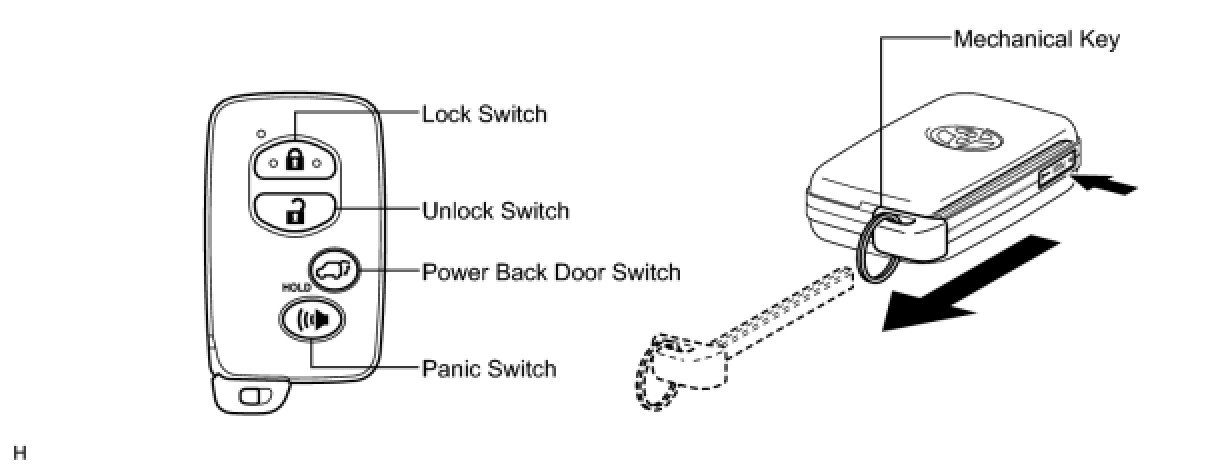 Push the lock/unlock/panic/power back door* switch on the key to operate each function. For details, Operation Check.