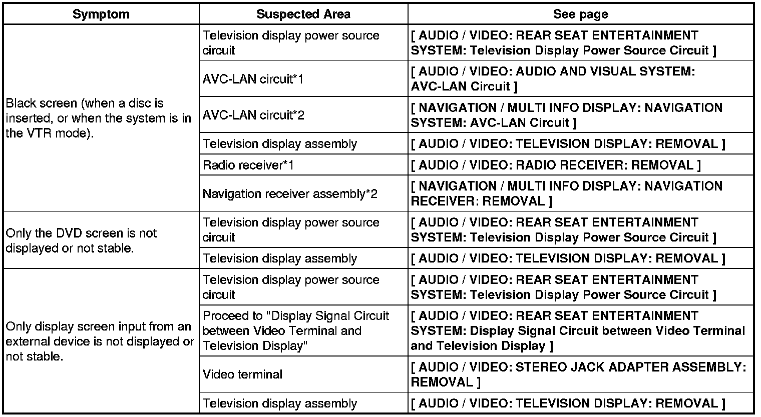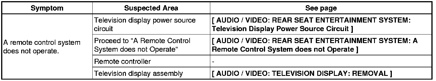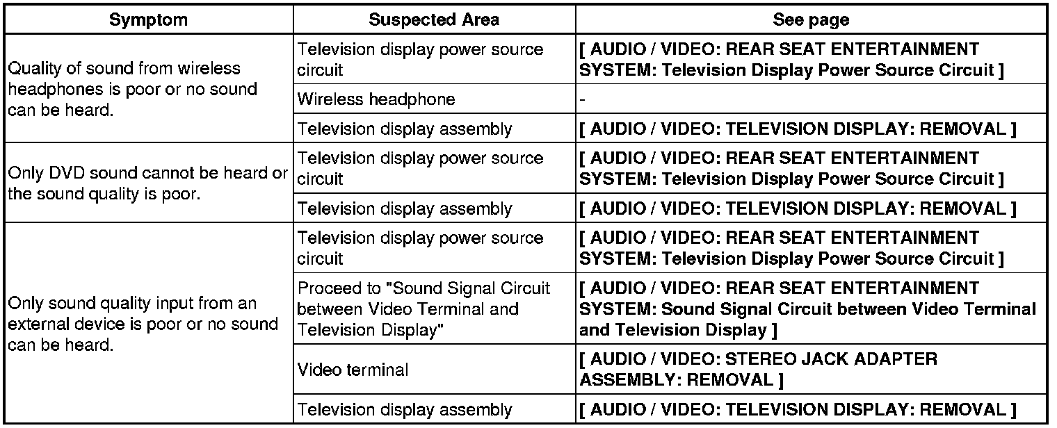 AUDIO / VIDEO: REAR SEAT ENTERTAINMENT SYSTEM: PROBLEM SYMPTOMS TABLE
