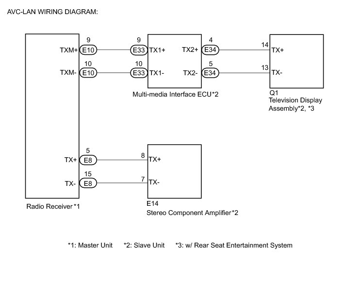(a) Referring to the following AVC-LAN wiring diagram, check the AVC-LAN circuit between the "Bluetooth" handsfree module and component shown by the sub-code.