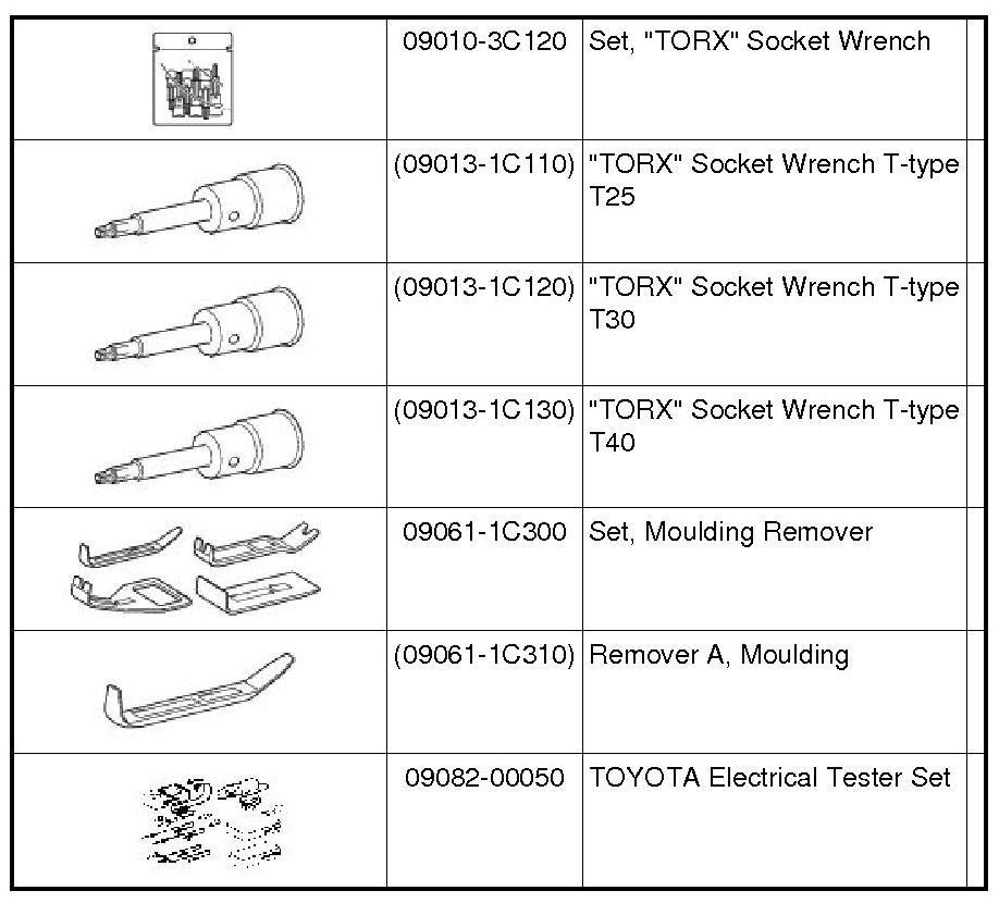 PREPARATION: DOOR / HATCH: RECOMMENDED TOOLS