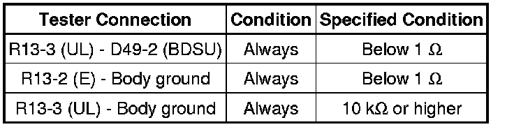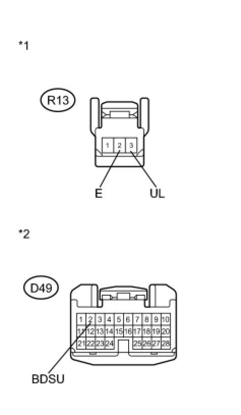 (a) Disconnect the R13 back door opener switch assembly connector and D49 main body ECU connector.