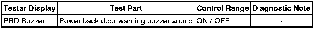 (e) Using the Techstream, perform the Active Test to generate a control command, and check that the power back door warning buzzer sounds.