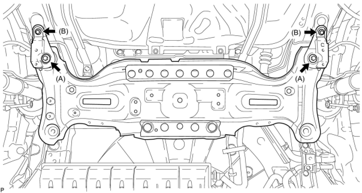 (a) Support the rear suspension member using a jack and 2 wooden blocks as shown in the illustration.