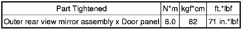 SPECIFICATIONS: MIRROR (EXT): TORQUE SPECIFICATIONS