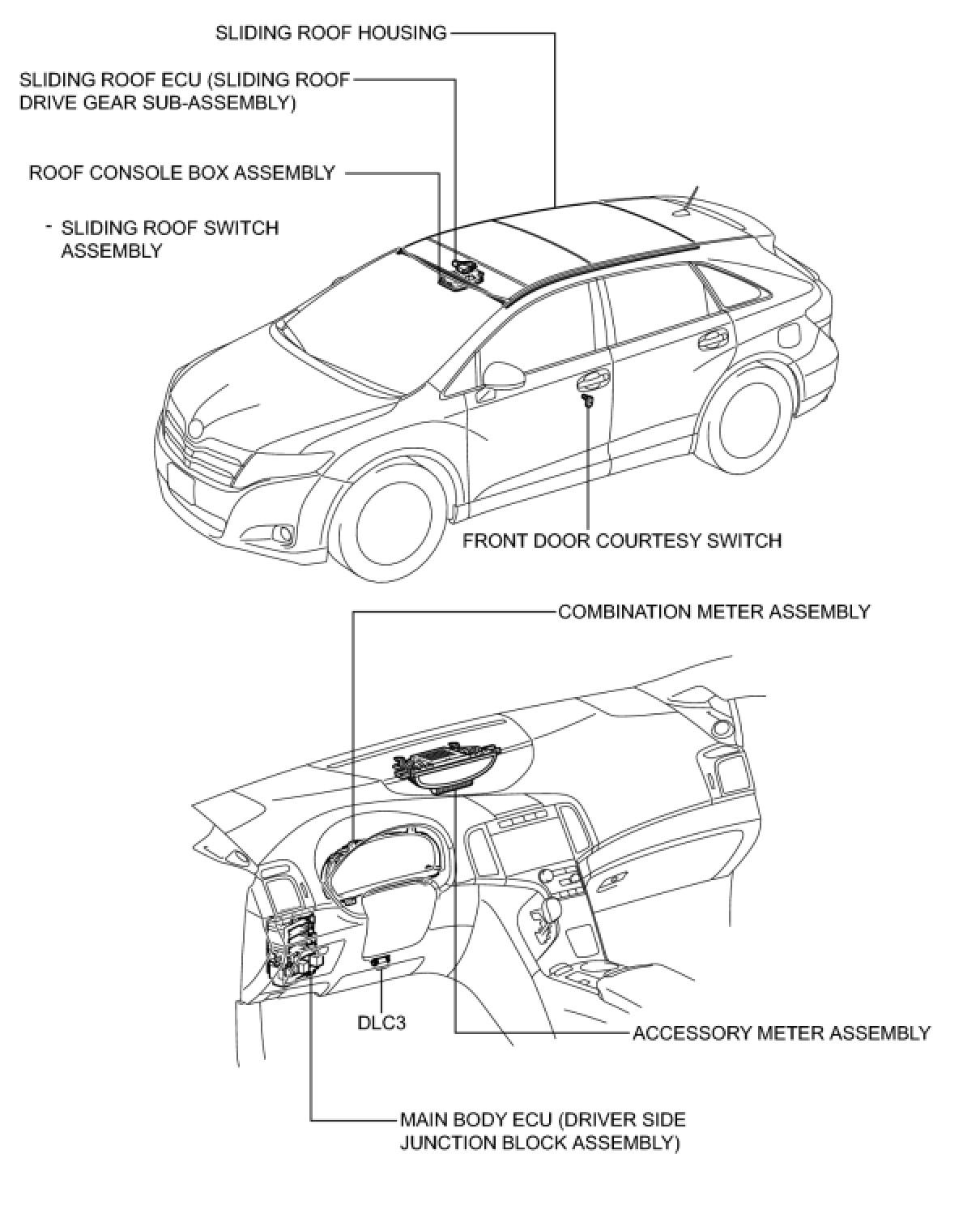 SLIDING ROOF / CONVERTIBLE: SLIDING ROOF SYSTEM: PARTS LOCATION