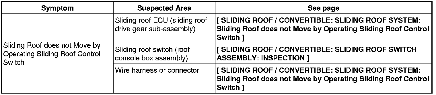 SLIDING ROOF / CONVERTIBLE: SLIDING ROOF SYSTEM: PROBLEM SYMPTOMS TABLE