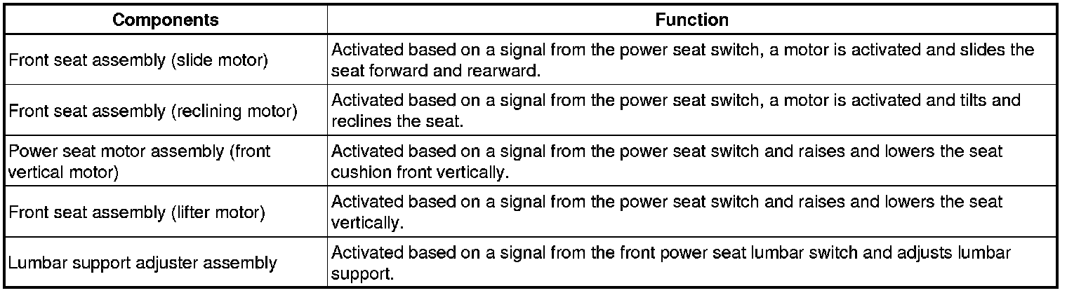 SEAT: FRONT POWER SEAT CONTROL SYSTEM: SYSTEM DESCRIPTION