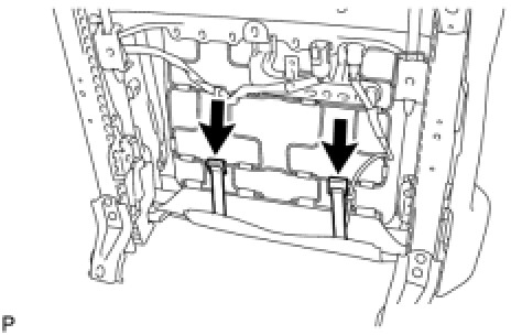 (c) Using hog ring pliers, install the front seatback cover with pad with 2 new hog rings.