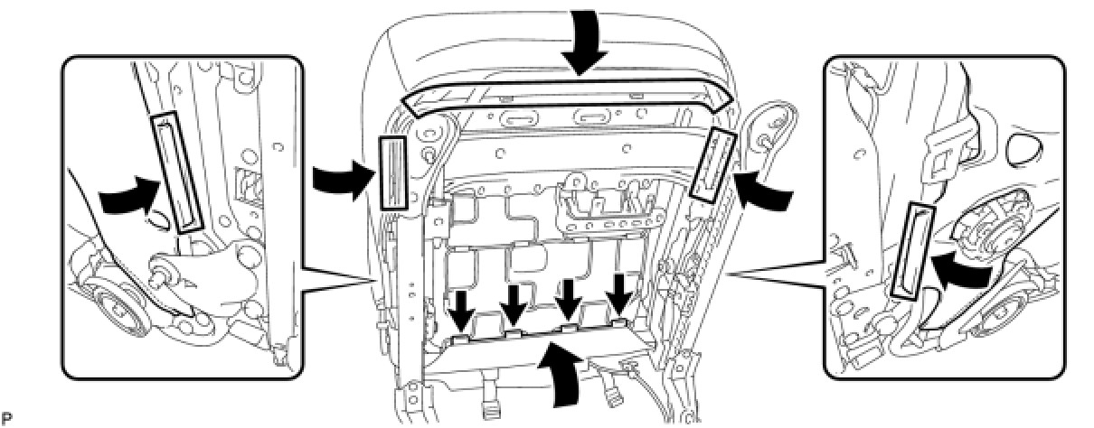 (a) Temporarily install the front seatback cover with pad to the front seat frame assembly with adjuster.