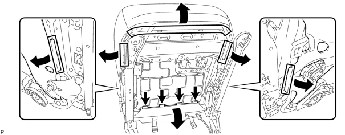 (d) Disengage the 2 guides and remove the seatback board sub-assembly as shown in the illustration.