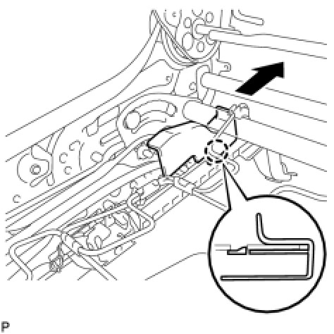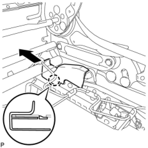 (a) Disengage the claw and the guide, and remove the front seat lower cushion shield RH as shown in the illustration.