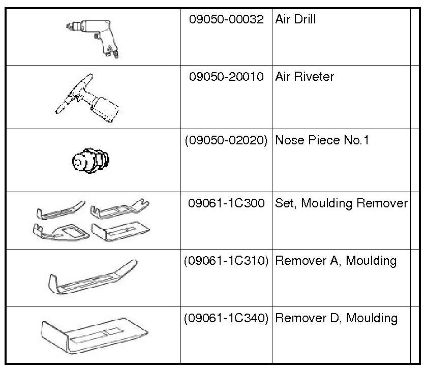 PREPARATION: EXTERIOR PANELS / TRIM: RECOMMENDED TOOLS
